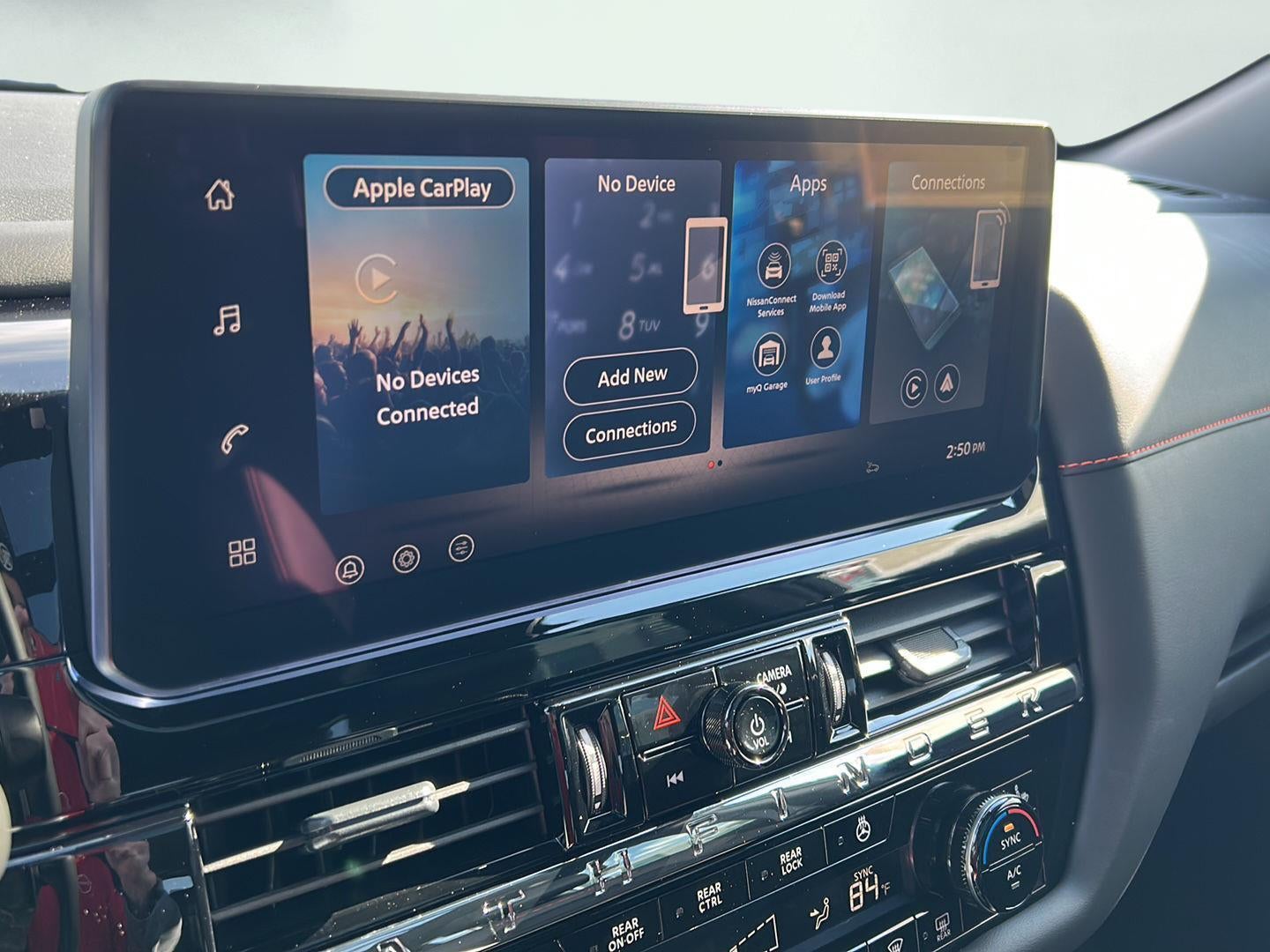 - NissanConnect featuring Apple CarPlay and Android Auto smart device wireless mirroring
