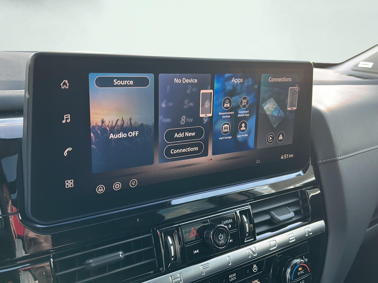 - NissanConnect featuring Apple CarPlay and Android Auto smart device wireless mirroring