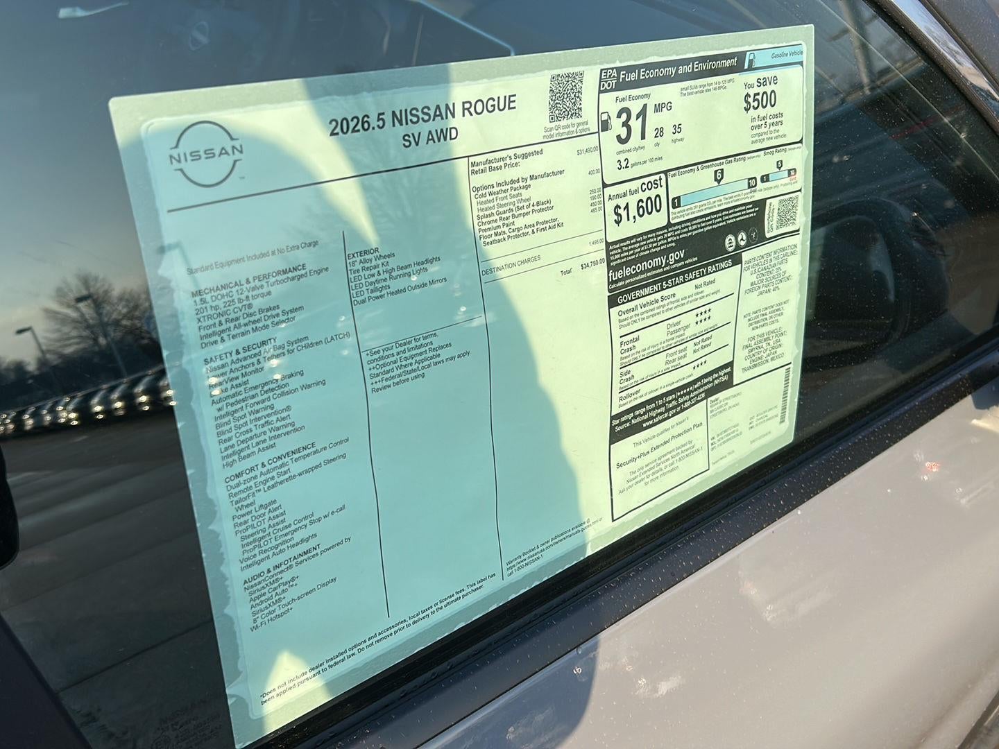 - Fuel Economy Est-Combined (MPG): 31
