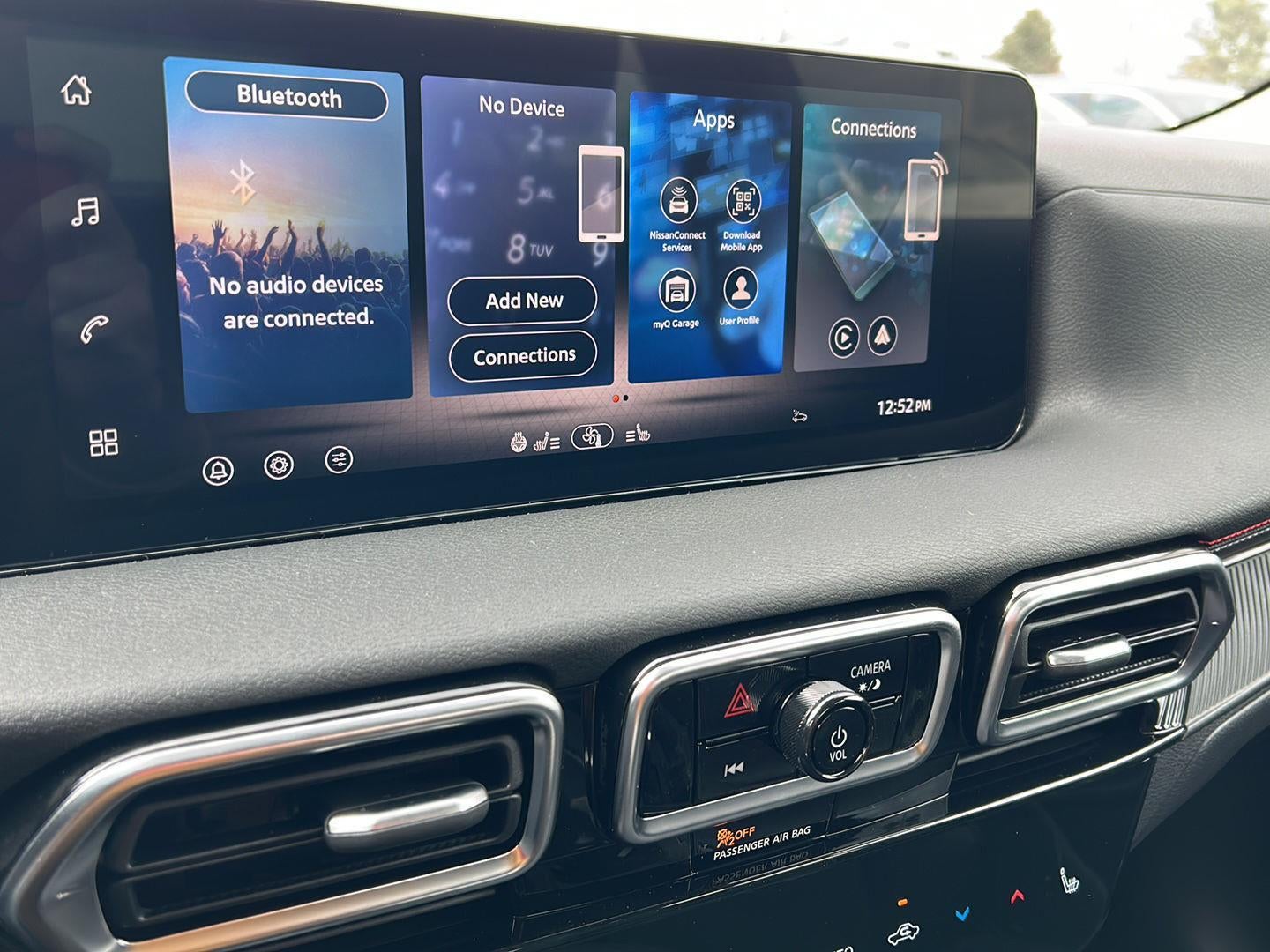 • Radio: AM/FM w/RDS/MP3 -inc: 6 speakers, 12.3" NissanConnect multimedia center display, Bluetooth® hands-free phone system, streaming audio via Bluetooth®, hands-free text messaging assistant, Siri Eyes Free, Google Assistant voice recognition, wireless Apple CarPlay and Android Auto, NissanConnect services, Wi-Fi hotspot, Over-The-Air (OTA) updating for headunit firmware via Wi-Fi WPA2 connection and (2) front USB connection port (type C)