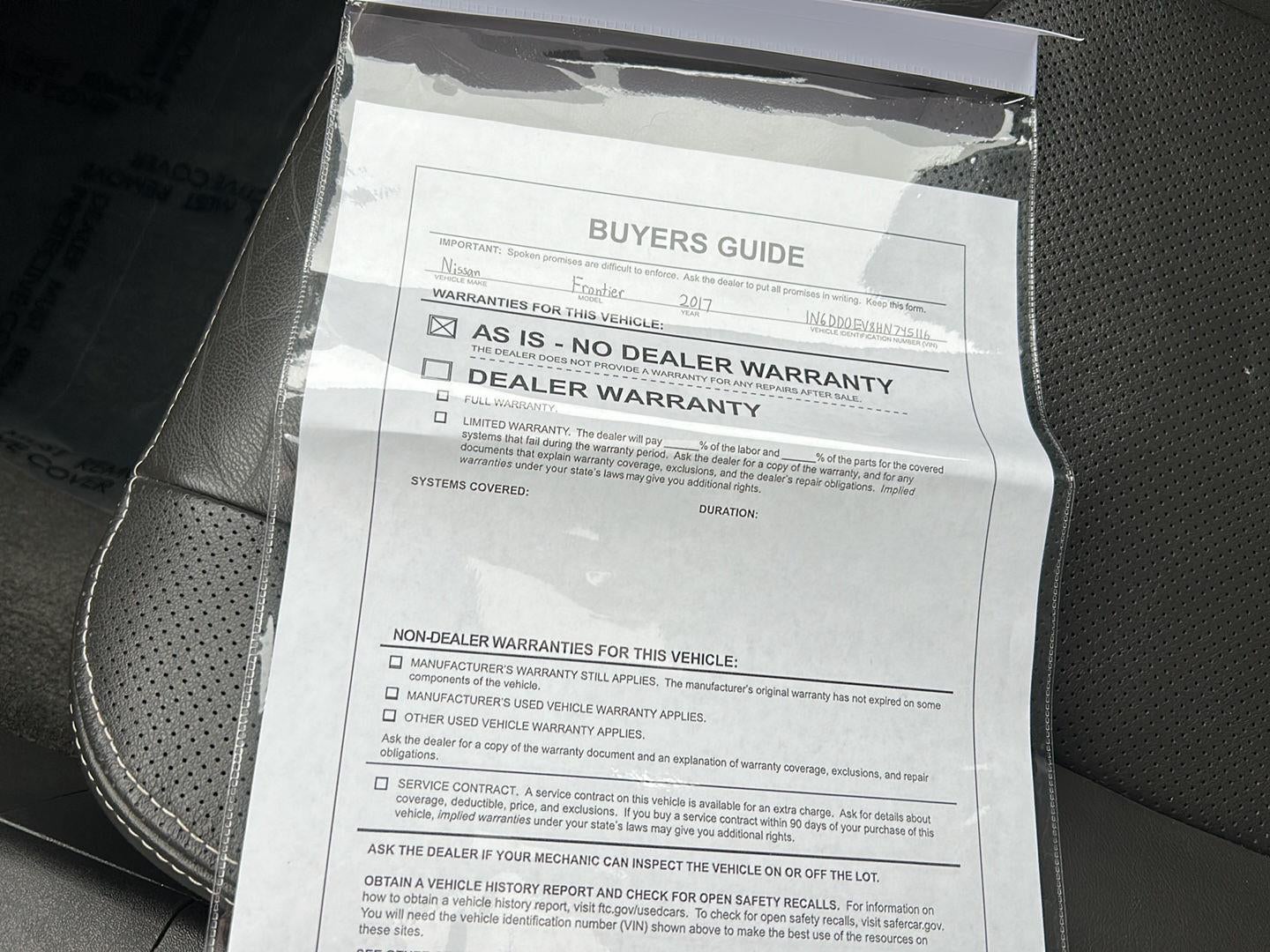 - Vehicle Name: Nissan Frontier